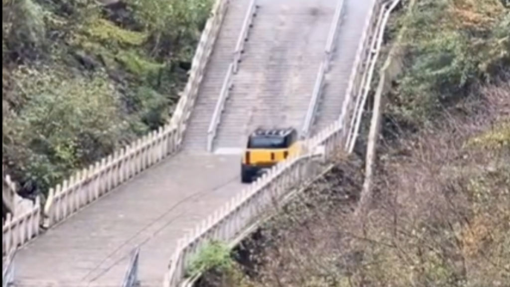 Um Chery Fulwin X3L tentou, na quarta-feira, dia 12, subir os 999 degraus que conduzem à famosa ‘Heaven’s Gate’, na montanha Tianmen, na China, mas a demonstração terminou em acidente. O veículo perdeu tração durante a subida, acabou por tombar e provocou danos na escadaria, considerada um monumento histórico muito visitado.