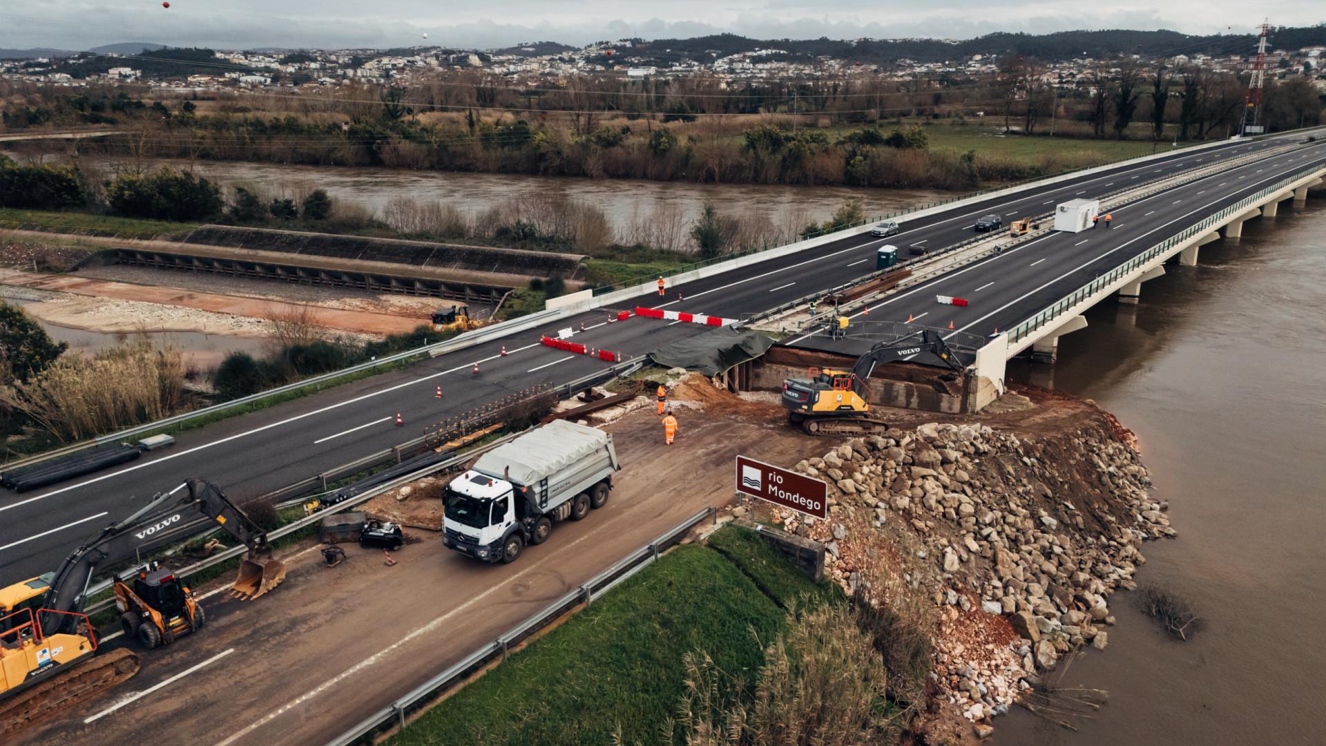 Em comunicado, a Brisa Concessão Rodoviária (BCR) explicou que “foram concluídos os trabalhos de enrocamento exterior do aterro e de estabilização da laje de transição da faixa Sul–Norte”.