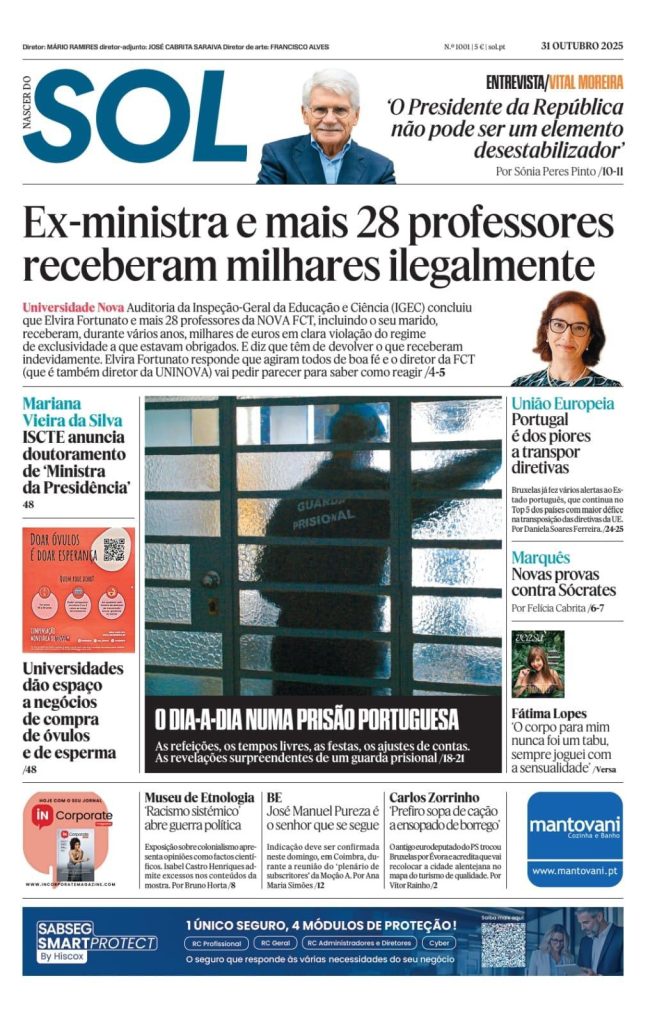 Na edição de amanhã, 31 de outubro, o semanário Nascer do Sol faz manchete com os resultados de uma auditoria da Inspeção-Geral da Educação e Ciência (IGEC) à Universidade Nova de Lisboa.