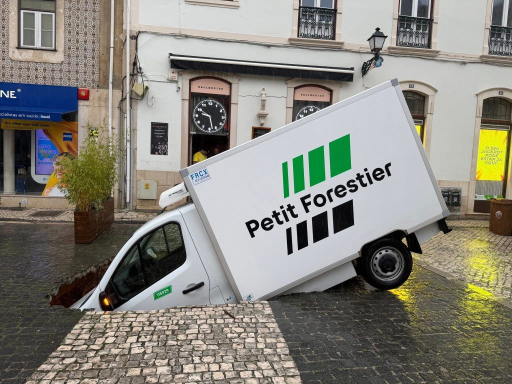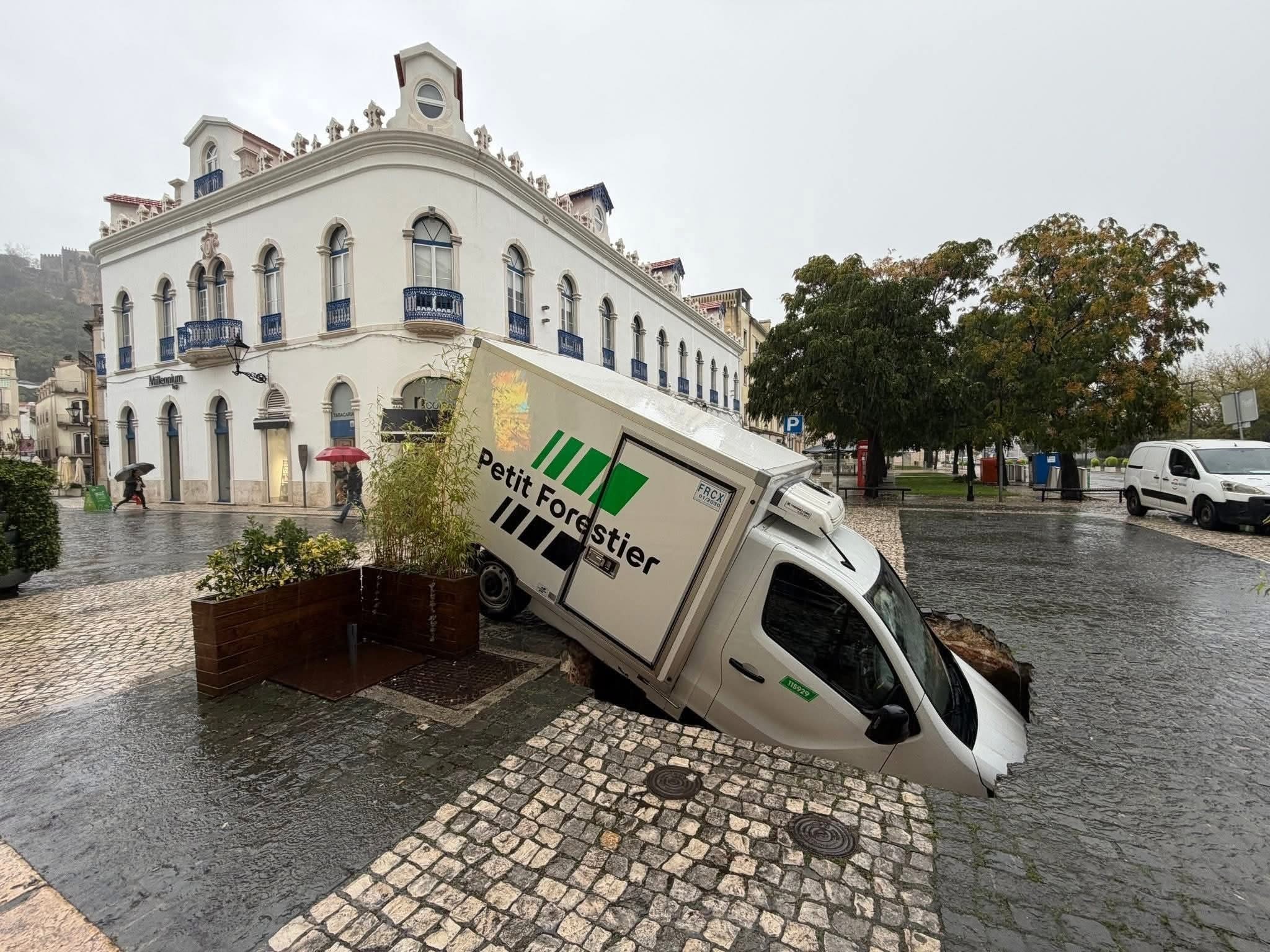 O pavimento da Praça Rodrigues Lobo, em Leiria, cedeu repentinamente na manhã deste sábado, dia 25, originando a abertura de uma cratera que acabou por engolir uma carrinha que se encontrava estacionada no local. Não se registaram feridos e os Bombeiros Sapadores foram de imediato chamados ao local.