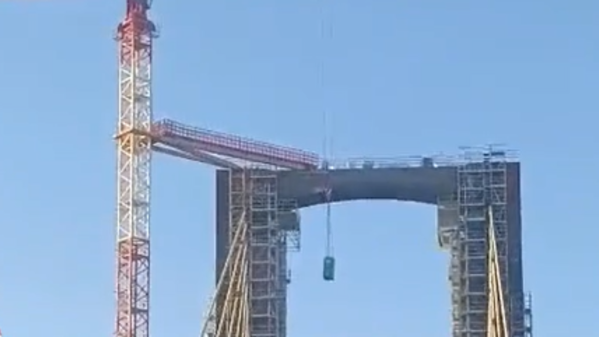 É assustador para quem vê, mas ainda mais para quem seguia naquela via. Este momento aconteceu na Ponte do Centenário de Sevilha, enquanto se realizavam trabalhos de obra.