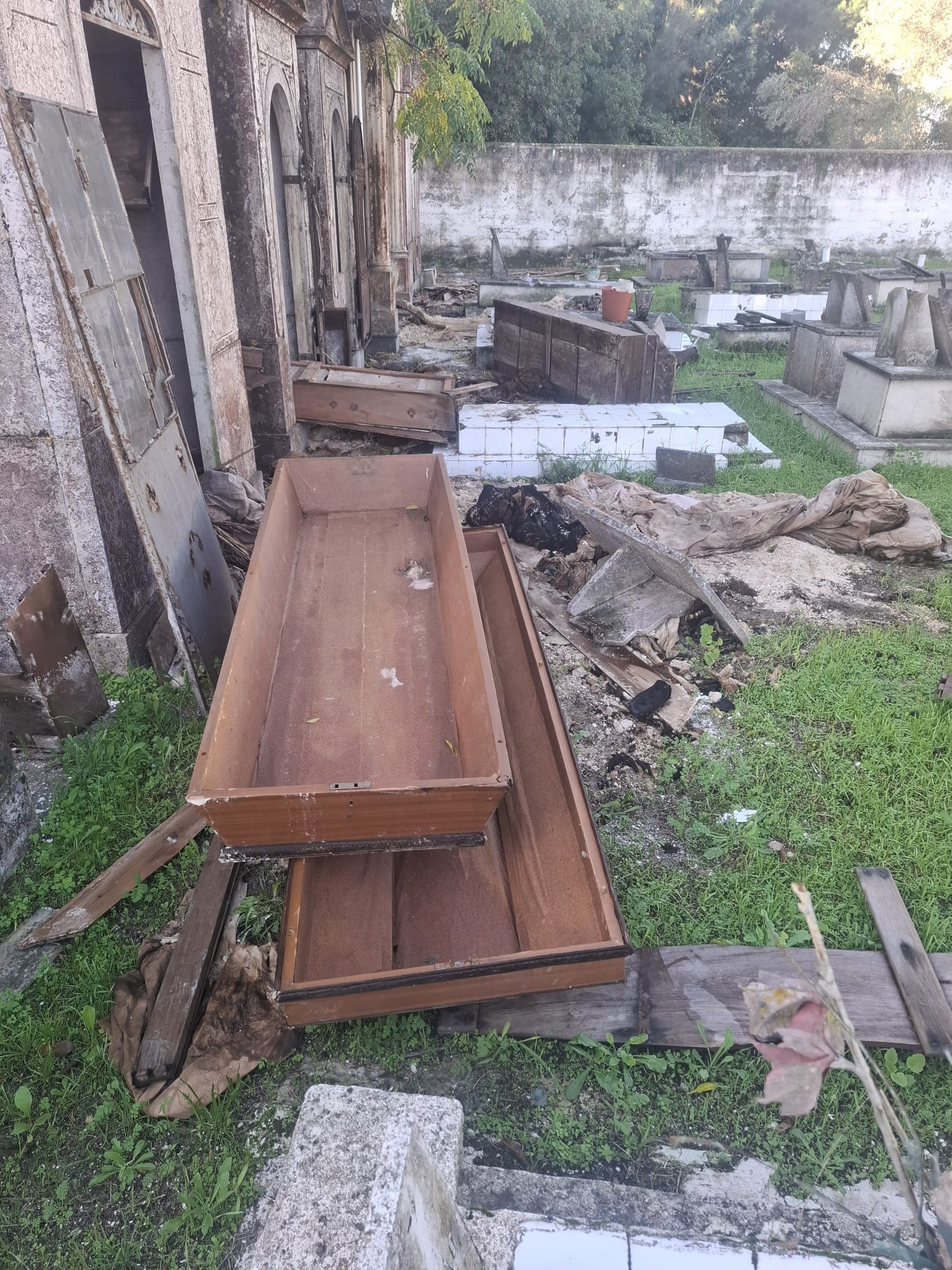 Campas abertas, caixões partidos e cadáveres espalhados: foi este o cenário com que a GNR se deparou esta terça-feira, dia 25, no cemitério de Alhos Vedros, no concelho da Moita, digno de um autêntico filme de terror.
