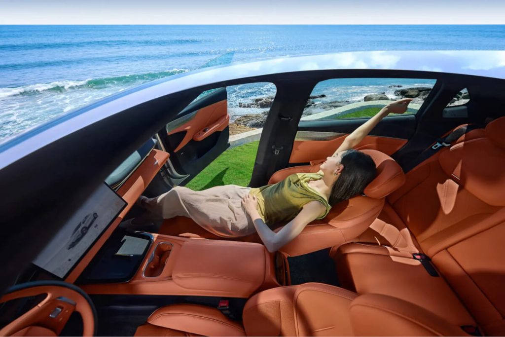 O conforto segue o mesmo nível tecnológico: bancos dianteiros com aquecimento e ventilação, king seat para o condutor e o inovador zero-gravity queen seat para o passageiro, com apoio elétrico de pernas. O volante é aquecido e o teto panorâmico de 1,9 m² pode ajustar, eletronicamente, a opacidade.