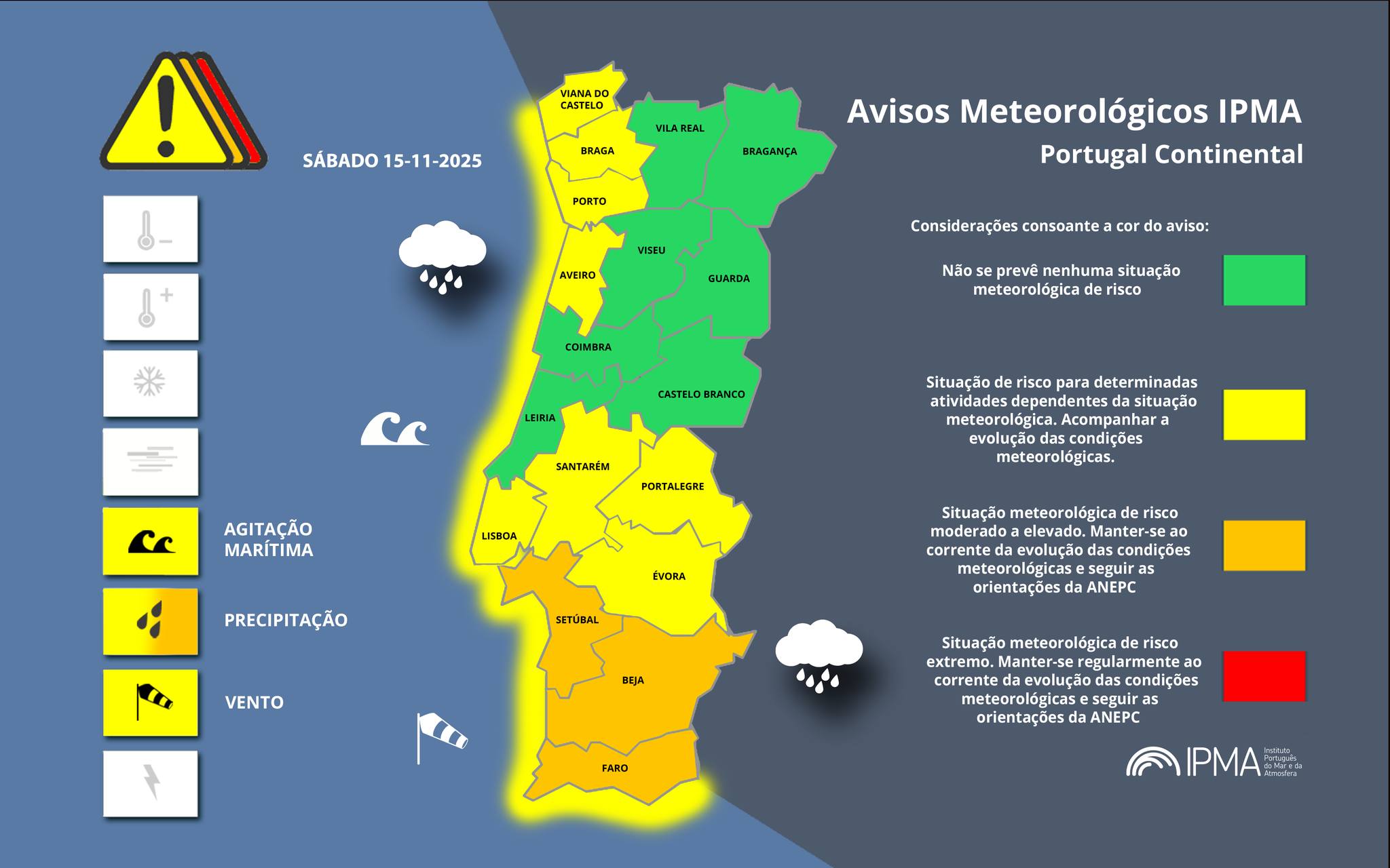 Toda a costa ocidental e sul do país se encontra também sob aviso amarelo, devido à agitação marítima.