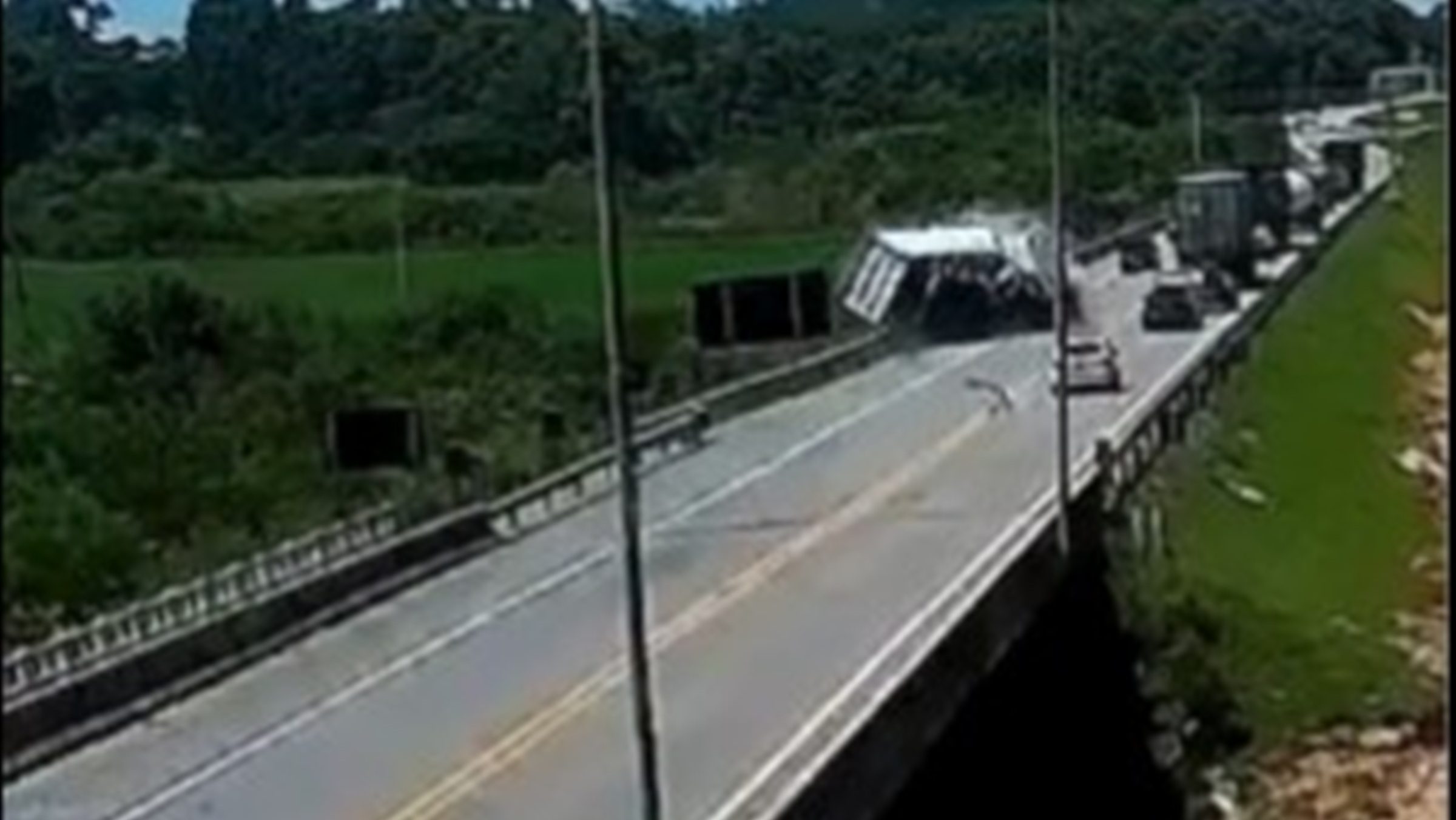 As imagens mostram o camião a aproximar-se de uma fila de veículos parados e, ao tentar ultrapassar, invade a faixa contrária, embatendo de frente no autocarro que se dirigia a São Lourenço do Sul. Parte da carga transportada pelo camião entrou no autocarro, atingindo alguns passageiros.