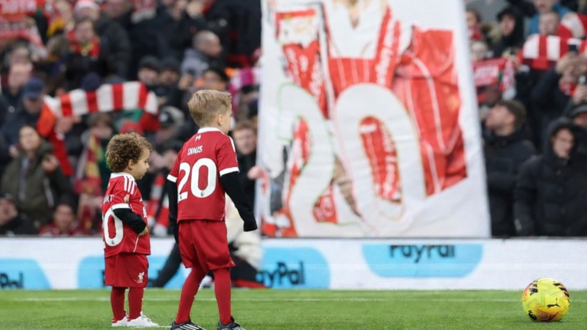A família de Diogo Jota foi recebida pelo Liverpool, este sábado, 27, e os campeões ingleses revelaram novas imagens, que mostram os filhos do avançado português, Dinis e Duarte, em Anfield. O vídeo está a comover os fãs.