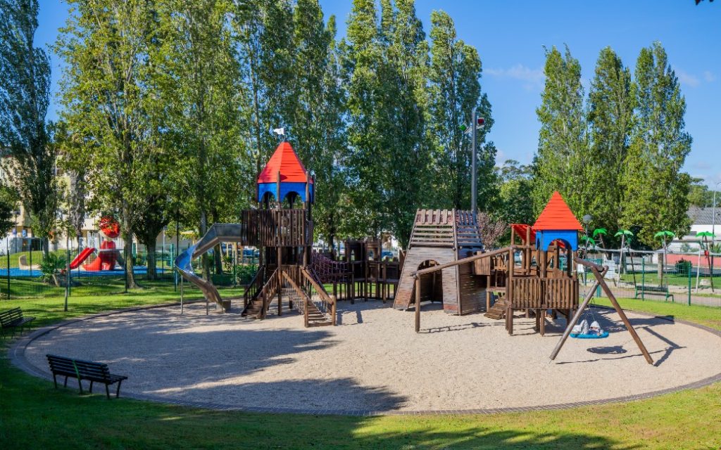 Outro parque com temática de castelo, com torres e estruturas de escalada que incentivam a atividade física e a imaginação. Bastante popular entre famílias da zona.