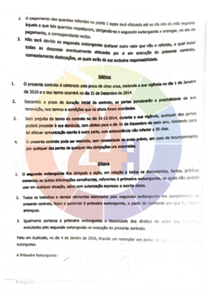 Refira-se, no entanto, que Alberto Couto Alves já conhecia as capacidades de Marques de Mendes – e, aparentemente, estava satisfeito com o trabalho. Cinco anos antes, já tinha tido a oportunidade de ter contratado os seus sábios serviços de consultoria, ainda a LS2MM não existia. O contrato – a cuja cópia o 24Horas teve igualmente acesso – foi celebrado em janeiro de 2010 entre a holding e o consultor Marques Mendes. Prolongou-se, pelo menos, por um ano. Couto Alves já então lhe pagava os mesmos cinco mil euros mensais, acrescidos da taxe de IVA.