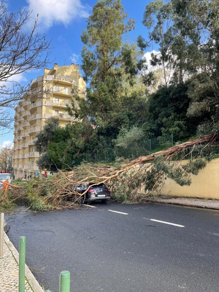 Mau tempo provocou a queda de uma árvore em São Domingos de Benfica, Lisboa