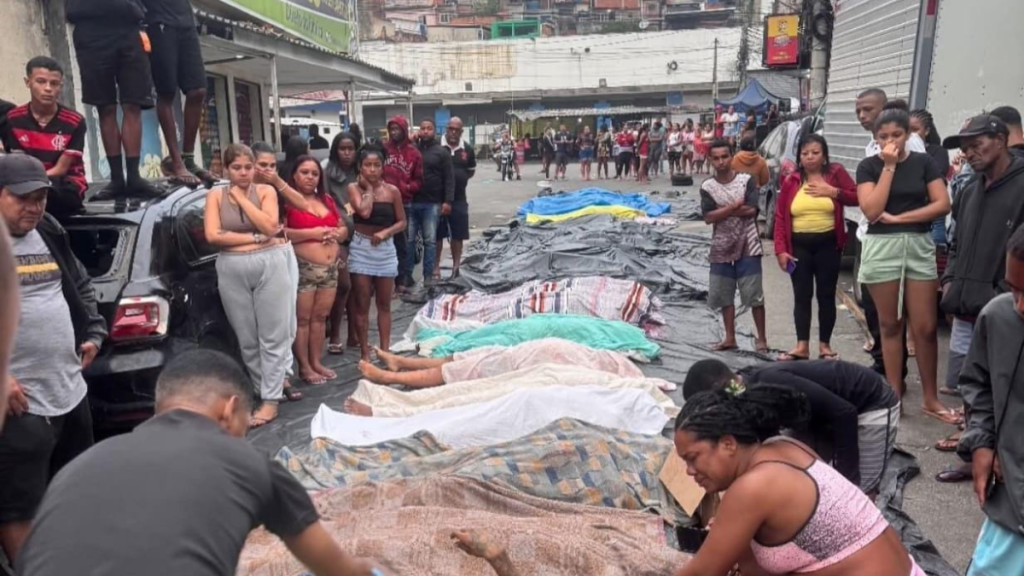 Pelo menos 70 corpos foram levados por moradores das favelas a Norte do Rio de Janeiro, no Brasil, para uma praça. Os cadáveres foram encontrados numa zona de mato, entre os complexos de favelas do Alemão e da Penha, zonas controladas pela fação criminosa Comando Vermelho (CV), onde decorreu, na terça-feira, dia 28, uma operação conduzida pela Polícia Militar e pela Polícia Civil, que se tornou na mais sangrenta da história da cidade.