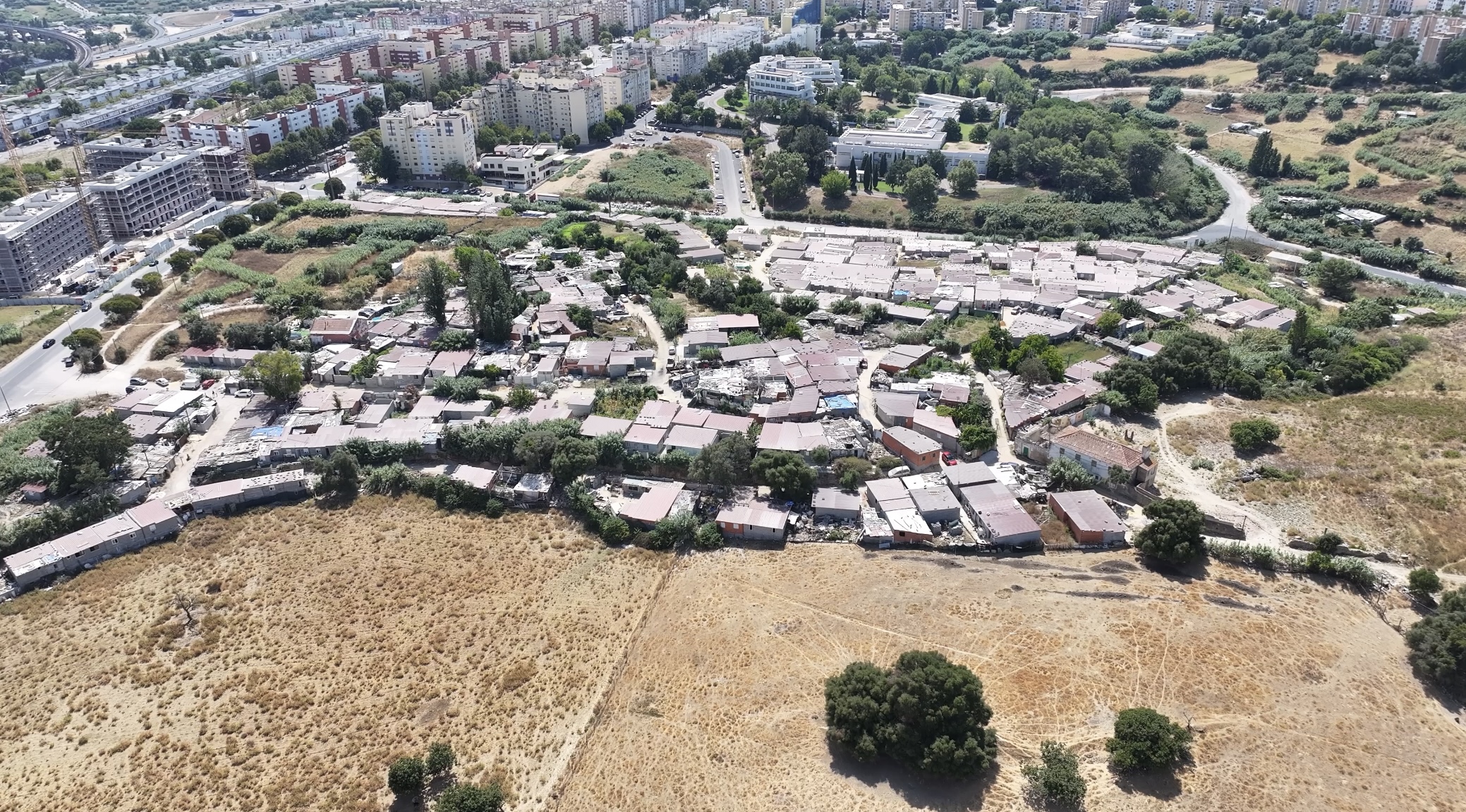 Na berma da estrada acumula-se lixo. A poeira invade o ar. A rua é de terra batida. Os serviços municipais não passam por aqui. “A câmara de Almada não recolhe o lixo precisamente para não tornar isto num sítio agradável para as pessoas viverem”, afiança Ivan Coimbra, sociólogo e ativista do Movimento Vida Justa.