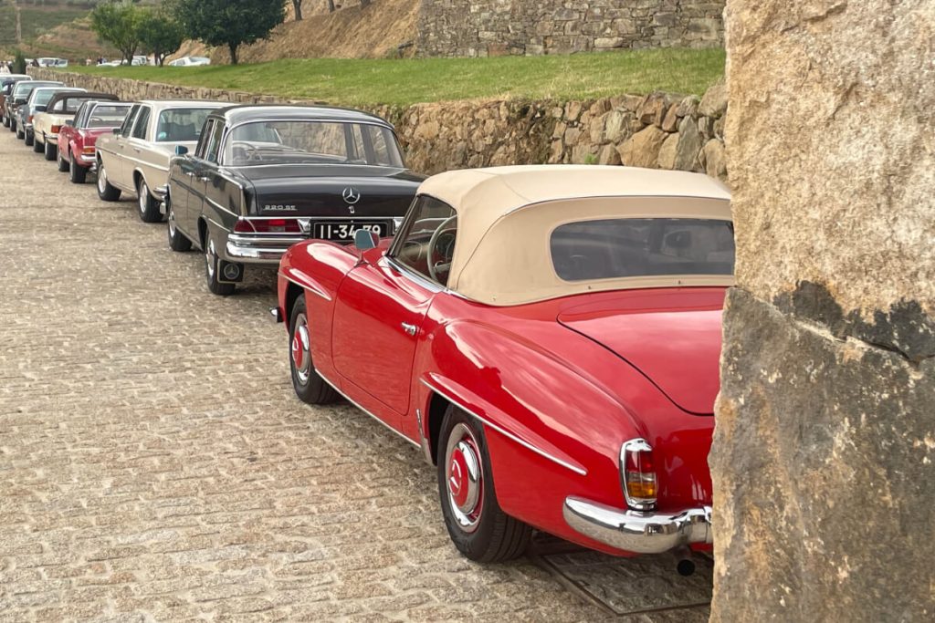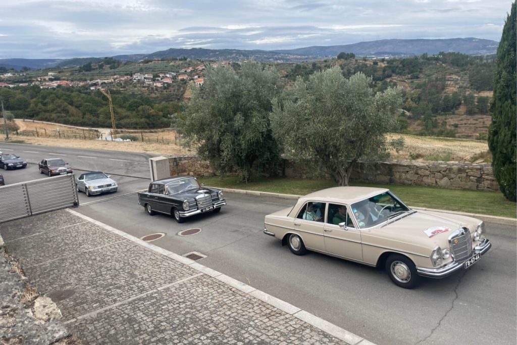 Com o rugido dos motores clássicos a misturar-se com a suavidade quase silenciosa do EQE elétrico, a caravana seguiu pela EN108 em direção a Mesão Frio. O percurso, marcado pela beleza do Douro classificado pela UNESCO, foi uma celebração de história, convívio e paixão automóvel.