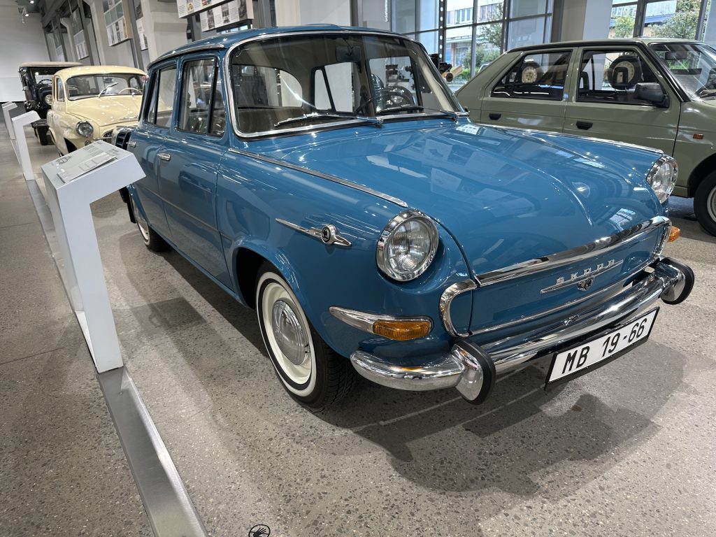 Com uma área de 1.800 m², apresenta cerca de 360 peças, incluindo veículos de produção, protótipos, carros de rali, motociclos e até a bicicleta Slavia de 1899, o exemplar mais antigo da coleção.