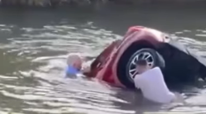 Depois de várias tentativas e também já a passar dificuldades devido às temperaturas frias das águas, conseguiu libertar o homem. O empresário foi levado para a margem, onde os serviços de emergência chegaram pouco depois. Um vídeo do resgate rapidamente ficou viral. O condutor foi levado ao hospital e não corre perigo de vida.