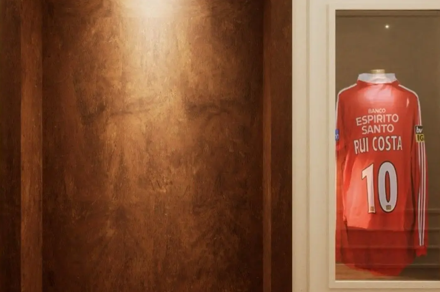 Os corredores dos quartos foram pensados para que cada detalhe fosse “concebido para refletir a memória benfiquista. Criámos nichos personalizados junto às portas, onde objetos do passado e do presente contam histórias. Cada corredor é um convite a mergulhar na identidade e na essência do Clube.”