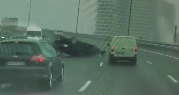 A perda de controlo do automóvel aconteceu metros adiante, quando o condutor tentava regressar à faixa central. A viatura entrou em despiste, com a traseira a fugir, embatendo violentamente no separador lateral antes de imobilizar-se em posição invertida. Apesar da gravidade do acidente, o proprietário do Tesla que presenciou a ocorrência, relatou que o condutor conseguiu abandonar o habitáculo pelo próprio pé, aparentemente sem ferimentos graves.