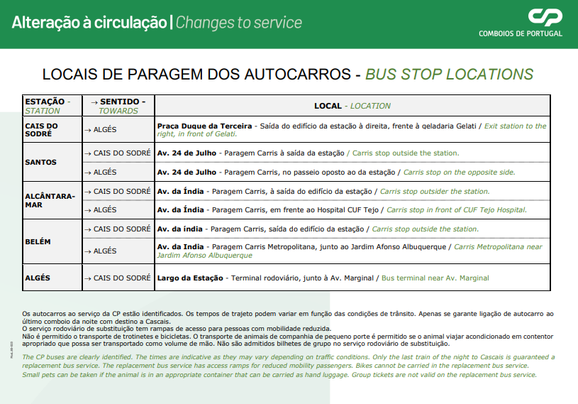 A mesma nota acrescenta que, de modo a amenizar os possíveis constrangimentos causados, será assegurado um serviço rodoviário alternativo, através de autocarros “devidamente equipados e identificados” com rampas de acesso para pessoas com mobilidade reduzida.