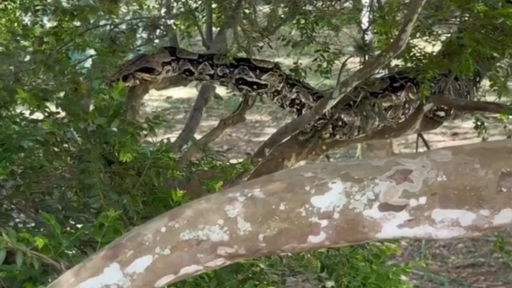 Quem captou a aparição do réptil foi o guia turístico brasileiro, Guilherme Pessanha dos Santos. Num vídeo partilhado nas suas redes sociais, o também criador de conteúdos digitais mostra-se a passear no jardim com um segurança daquele espaço a indicar-lhe a planta sobra a qual o animal estava a descansar.