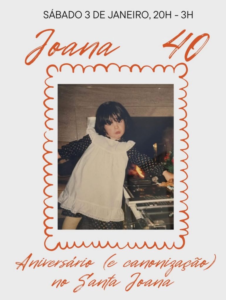 Entre as fotografias partilhadas surge também o convite que a humorista enviou aos amigos onde se lê que esta celebração seria um “aniversário e canonização”, a decorrer no restaurante Santa Joana, em Lisboa, entre as 20:00 e as 3:00.