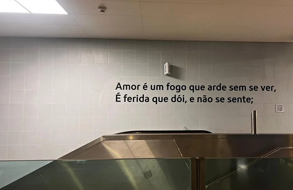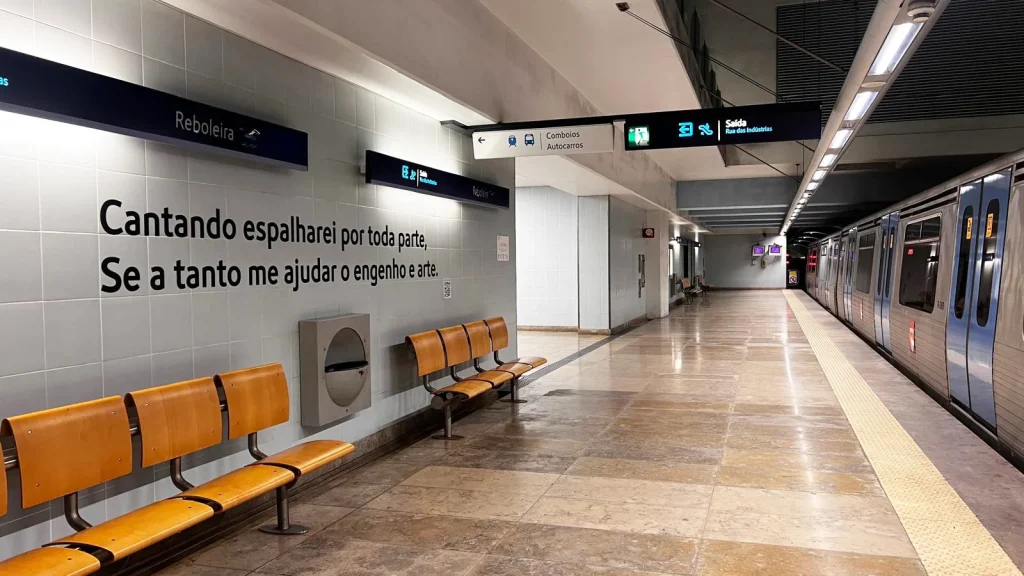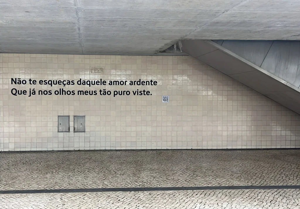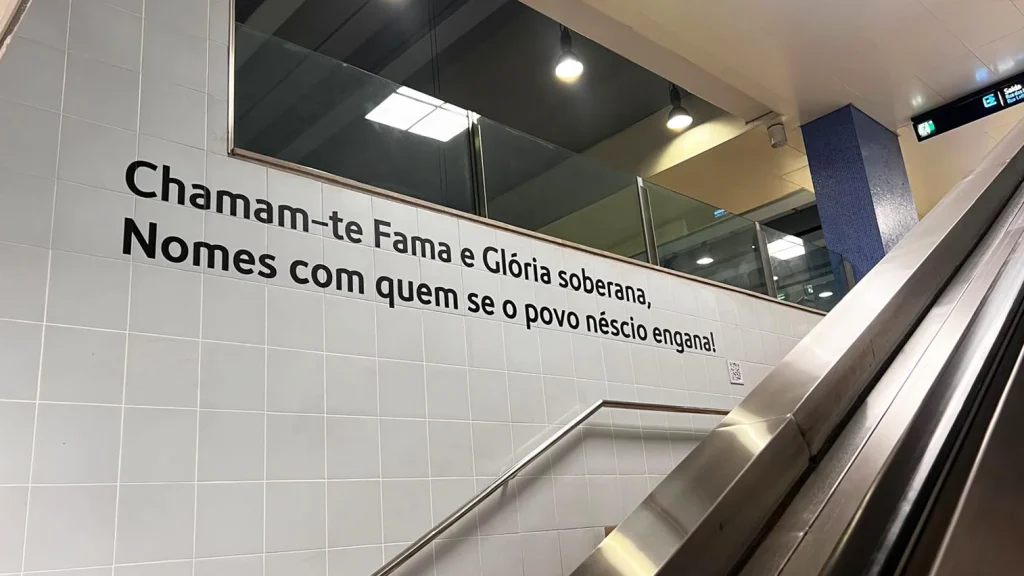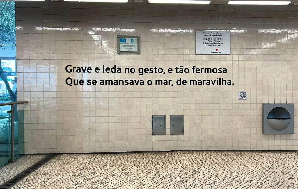 Através de intervenções artísticas distribuídas por várias paredes das estações, os versos de Camões surgem como parte do ambiente do metro, transformando os trajetos diários em momentos de encontro com a literatura.
