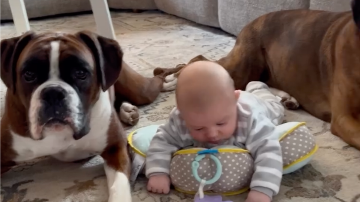 O vídeo acompanha o momento ternurento em que um bebé chega finalmente a casa, sendo recebido com curiosidade e entusiasmo pelos dois boxers da família, Cali e Cooper. Desde o primeiro instante, percebe-se que eles estão ansiosos e protetores: o primeiro observa cada movimento com calma e atenção, enquanto o segundo, mais efusivo, também demonstra cuidado e carinho, mostrando que está pronto para proteger Vincent.