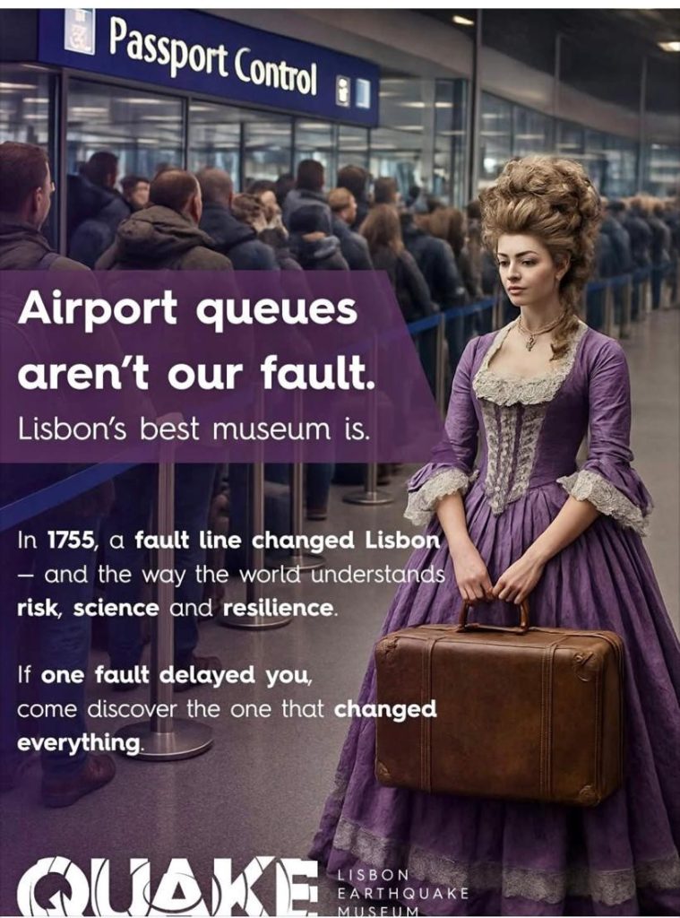 Perante as horas de espera enfrentadas por milhares de passageiros, o museu recorre à ironia para captar a atenção de turistas e residentes, associando os atrasos nos aeroportos a um dos acontecimentos mais marcantes da história da capital. “As filas no aeroporto não são nossa culpa. Mas o melhor museu de Lisboa é. Em 1755, um erro mudou Lisboa – e o modo como o mundo percebe risco, ciência e resiliência. Se um erro atrasou-te, vem descobrir o erro que mudou tudo”, lê-se na mensagem divulgada.