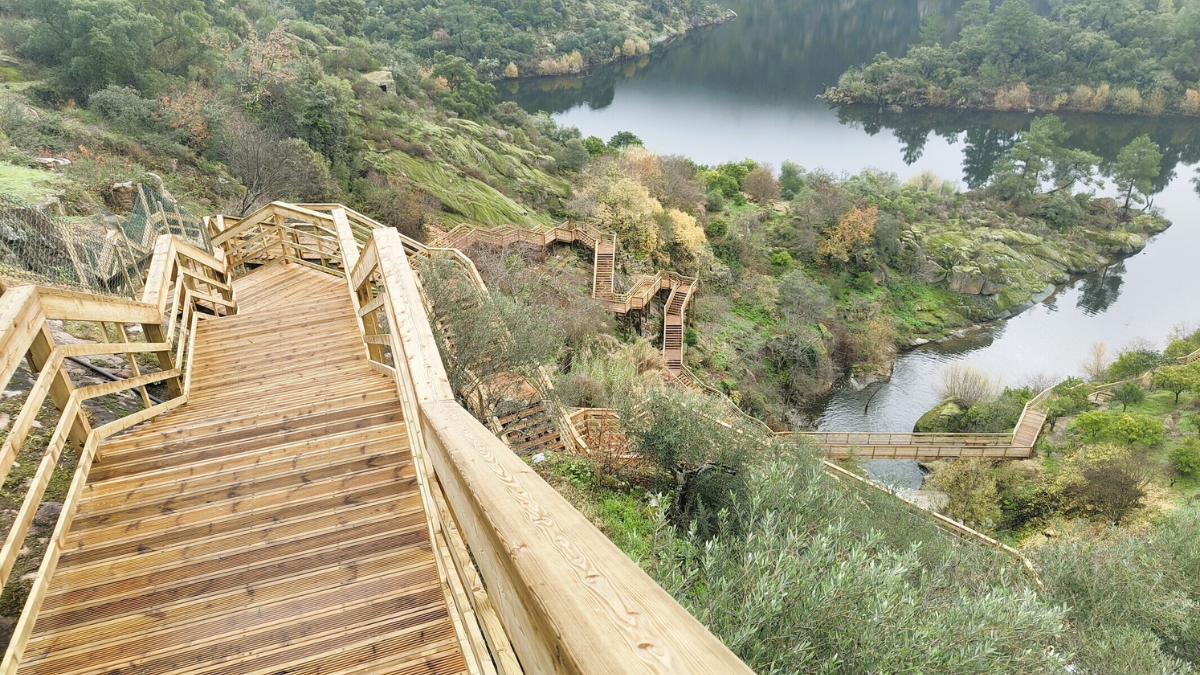 Ao longo do trajeto, os visitantes percorrem passadiços em madeira intercalados com troços em terra batida, sempre junto à ribeira, num cenário marcado por cascatas, galerias ripícolas e terrenos agrícolas tradicionais. Vinhas, olivais e laranjais acompanham parte do percurso, contribuindo para uma experiência que cruza natureza e identidade rural, num território profundamente ligado à cultura do Douro.