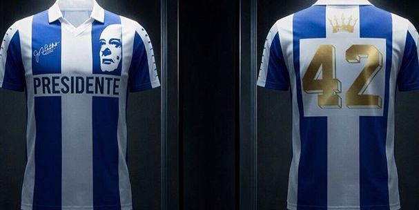 A camisola tem ainda vários detalhes ligados à figura de Pinto da Costa. No lugar do símbolo está a cara do lendário presidente do FC Porto, no lugar onde costuma estar a publicidade, está a palavra “Presidente” e conta ainda com a sua assinatura.