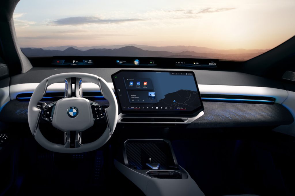 As jantes aerodinâmicas, os painéis laterais esculpidos e a traseira limpa reforçam o carácter tecnológico e eficiente do modelo. No interior, o ambiente é minimalista e envolvente, dominado pelo novo BMW Panoramic iDrive, uma superfície curva e panorâmica que une o painel de instrumentos e o ecrã central, permitindo uma experiência digital imersiva e centrada no condutor.