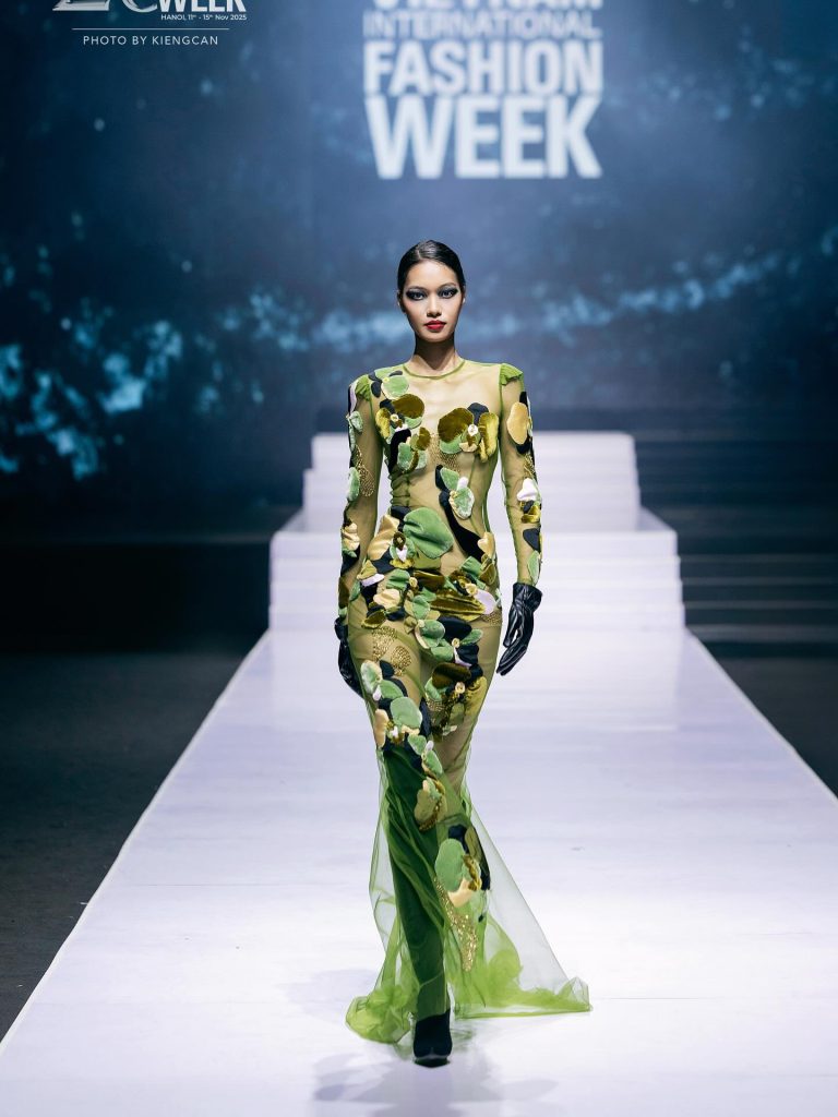 Apesar da queda aparatosa, Lai Mai Hoa recuperou de imediato a postura, levantou-se com naturalidade e prosseguiu a passerelle com segurança, recebendo aplausos do público pela sua serenidade e profissionalismo. A modelo, vencedora do Vietnam’s Next Top Model 2025, demonstrou uma vez mais a experiência e autocontrolo que a destacaram no concurso.