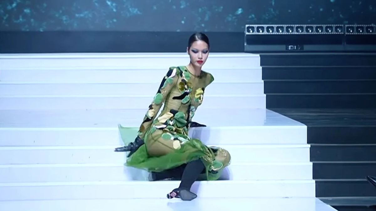 O primeiro desfile da Vietnam International Fashion Week Outono-Inverno 2025 ficou marcado por um incidente inesperado protagonizado pela modelo Lai Mai Hoa, de 20 anos, que sofreu uma queda em pleno desfile. O momento ocorreu durante a apresentação do último coordenado da coleção da estilista Ha Linh Thu, quando a modelo descia um conjunto de escadas e a longa saia do vestido acabou por provocar o escorregão.
