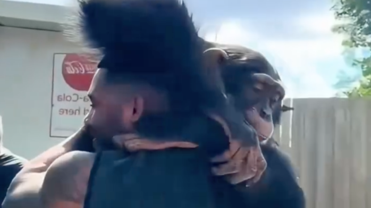 O vídeo mostra o reencontro comovente entre um homem e um chimpanzé, separados há vários anos. Assim que se reveem, o animal reconhece o antigo cuidador e aproxima-se com gestos de ternura, num abraço que expressa uma ligação profunda e verdadeira, impossível de fingir.