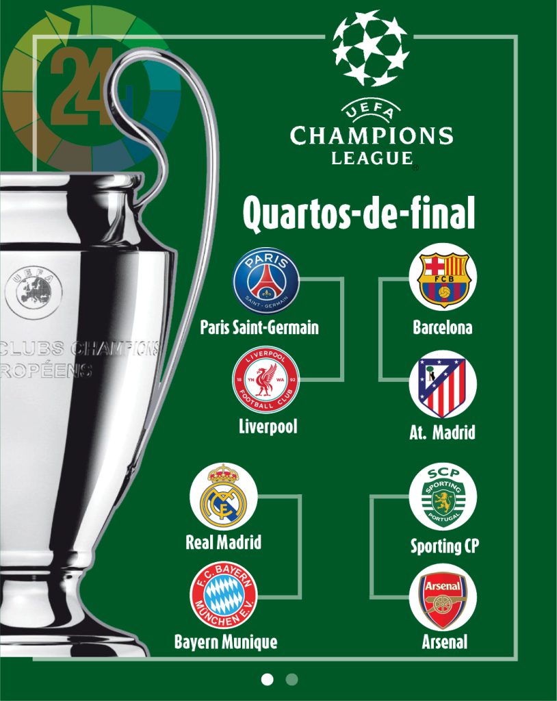 Os jogos dos oitavos-de-final da Liga dos Campeões terminaram esta quarta-feira, dia 18, e com isso já se conhece os confrontos da próxima eliminatória. O 24Horas dá-lhe toda a informação que precisa de saber.