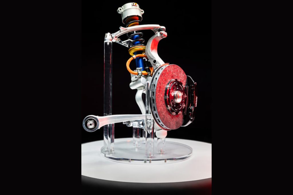 Os amortecedores apresentam um design otimizado que permitiu reduzir o peso em 2 kg e integram um termopar dedicado à monitorização da temperatura do óleo lubrificante, com o objetivo de estabilizar o comportamento a frio e a quente.
