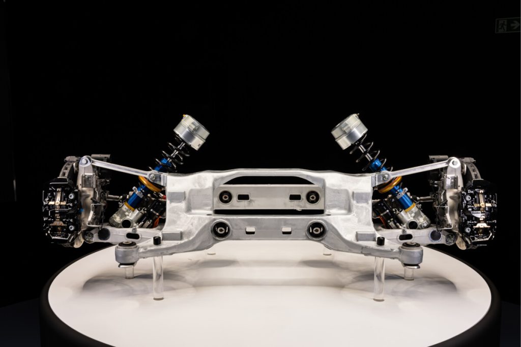 Para preservar o prazer de conduzir, o subchassis foi projetado com uma arquitetura que maximiza as distâncias entre os casquilhos elásticos, garantindo elevada rigidez sob cargas laterais — como num chassis rígido — e mantendo a flexibilidade necessária para atingir os objetivos de conforto.