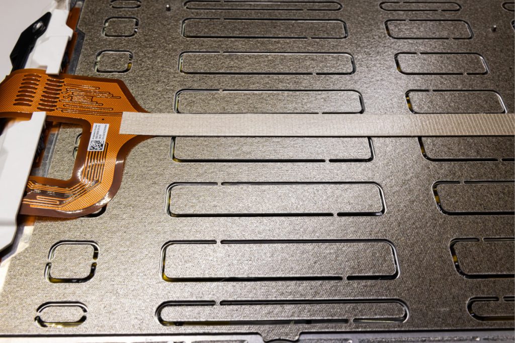 Os elementos transversais que garantem a rigidez são as próprias fusões de compressão das células, que integram os pontos de fixação ao chassis. Assim, a bateria deixa de ser um bloco independente e torna-se parte estrutural do veículo, com apenas duas carcaças.