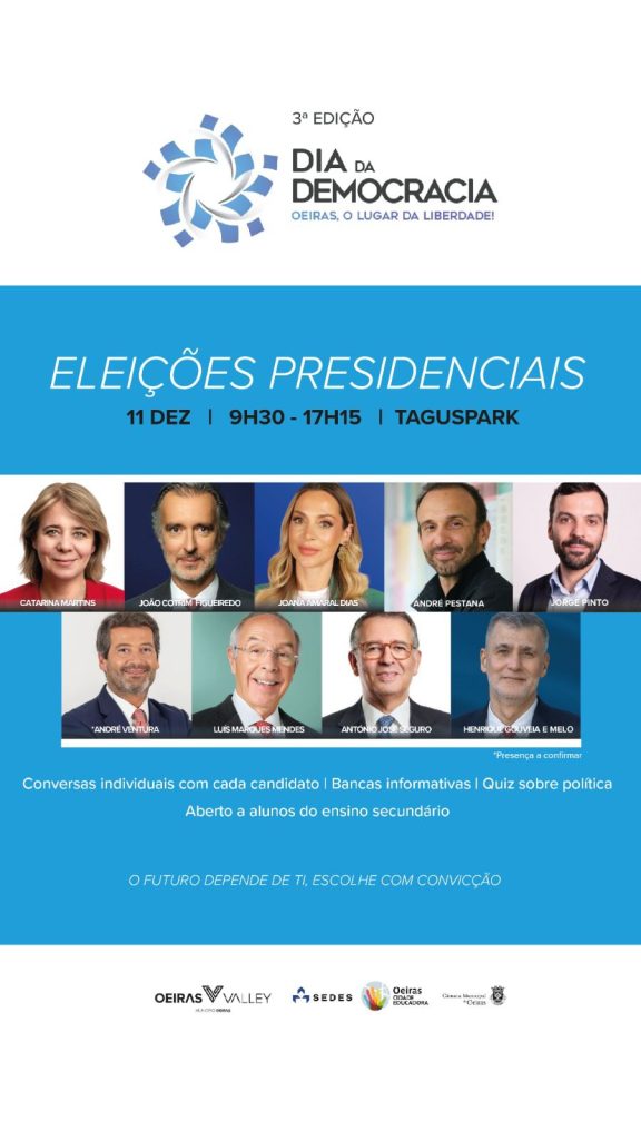 O Município de Oeiras vai receber esta quinta-feira, dia 11, o ‘Dia da Democracia’, desta vez no Taguspark, reunindo cerca de 700 jovens com alguns candidatos à Presidência da República.