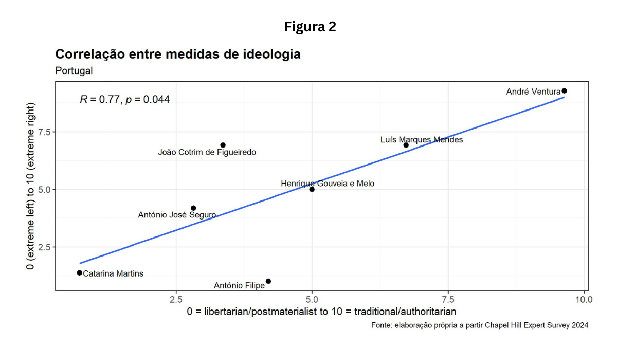 O primeiro cenário exclui da análise o candidato Henrique Gouveia uma vez que ele apresenta candidatura independente e, por esse motivo, não consta com uma legenda previamente classificada na escala do Chapell Hill, o que impede o cálculo da distância ideológica. Nesse cenário, o modelo aponta para a vitória de Seguro com 58,6% dos votos válidos. O segundo cenário tenta superar esse problema e, com auxílio de ferramentas de inteligência artificial, classifica Henrique Gouveia no espectro ideológico. Ele recebeu escore de 2,1 no índice galtan, que varia entre 0 para partidos libertários/pós–materialistas até 10 para legendas consideradas tradicionais/autoritárias, conforme a metodologia do Chapell Hill e 2,8 na escala lrgen, que varia de 0 para partidos de extrema esquerda até 10 para legendas de extrema direita. Com essa inclusão, a vantagem de Seguro aumenta e sua votação projetada é de 62,1%. Por fim, considerando a inclusão de Henrique Gouveia, mas restringido o modelo a apenas um indicador de ideologia, a estimativa para Seguro é de 57,8%. Ou seja, em todos os cenários, nosso modelo aponta para a vitória de Antônio Seguro com uma vantagem confortável.