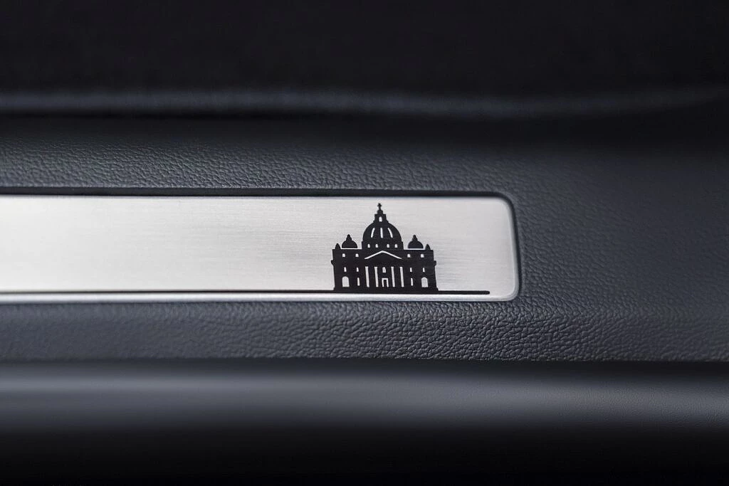 No interior, as etiquetas dos bancos exibem a bandeira de Chicago, enquanto o horizonte da cidade está bordado na consola central do veículo. Já nas soleiras das portas foram gravadas imagens do skyline da cidade norte-americana e da Basílica de São Pedro.