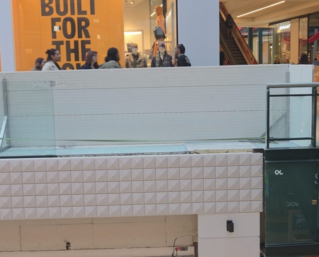 Nas imagens que o 24Horas lhe mostra, é possível ver que os antigos corrimãos de vidro estão agora a ser substituídos por novas barreiras mais modernas ao longo de todo o centro comercial.