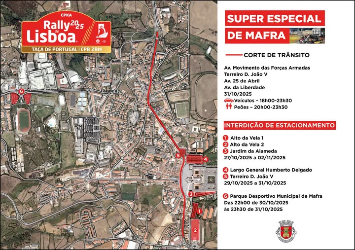 Durante a noite, o público poderá assistir à Super-Especial noturna de Mafra, com início às 21:00, que termina nas imediações do Palácio Nacional de Mafra – um cenário que promete dar ainda mais encanto ao evento. Ao longo dos três dias, o rali vai atravessar nove concelhos da região de Lisboa, com um total de 101 quilómetros cronometrados divididos em 13 classificativas, todas disputadas em asfalto.