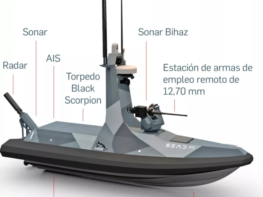 A marinha espanhola incorporou oficialmente o primeiro veículo de superfície não tripulado (USV) SEAD 23 à sua frota. De acordo com um comunicado, o novo drone foi desenvolvido para missões de reconhecimento, vigilância e apoio a operações de combate.