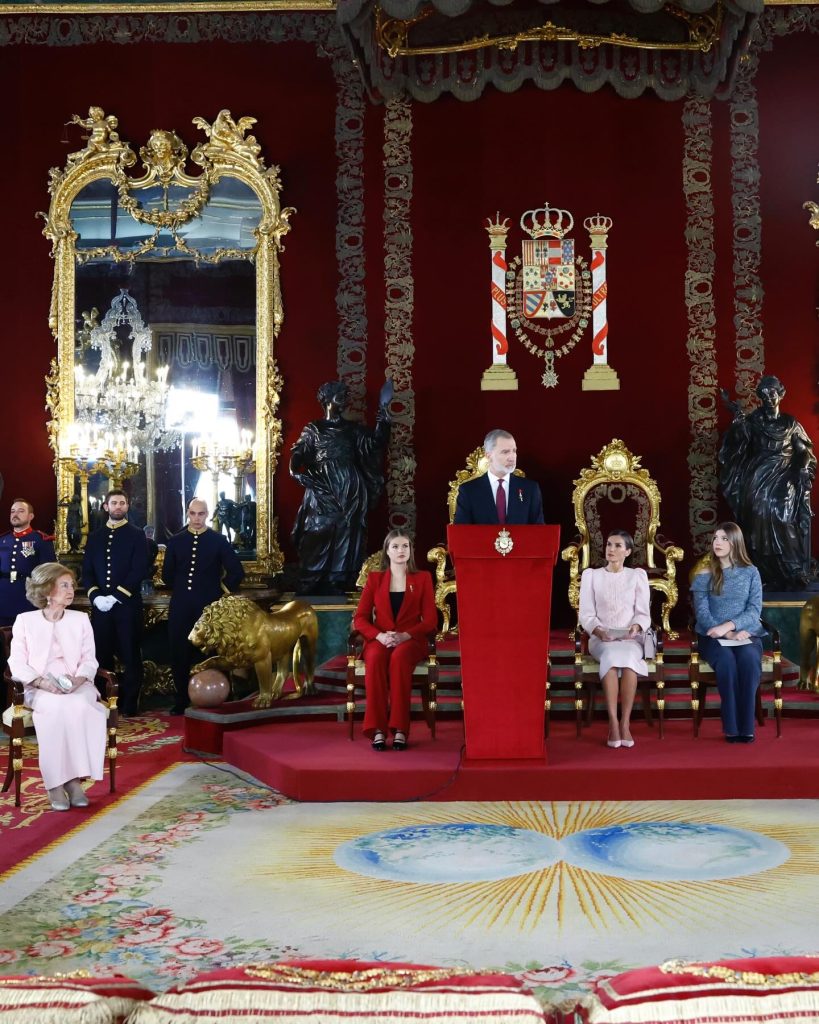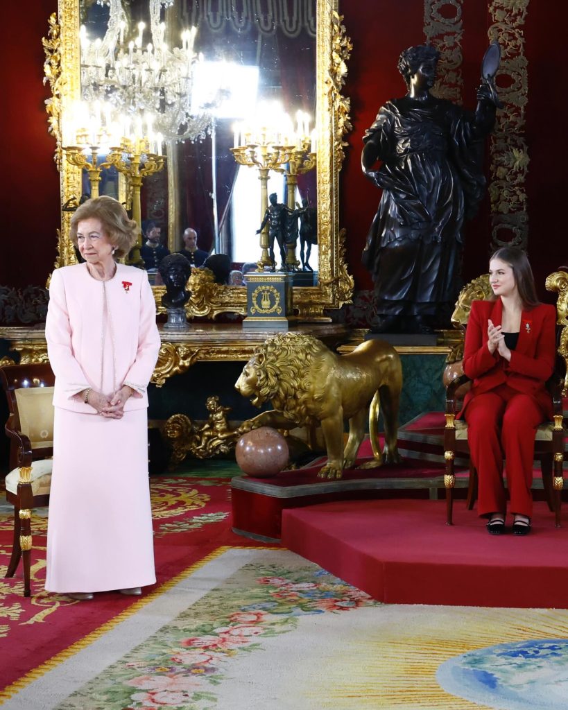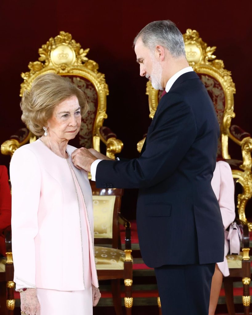 Na cerimónia, onde estiveram também a rainha Letízia, a princesa Leonor e a infanta Sofia, o rei Filipe entregou à mãe o Colar da Ordem do Tosão de Ouro. A condecoração é um reconhecimento à “sua dedicação e compromisso com o serviço da Espanha e da Coroa”.