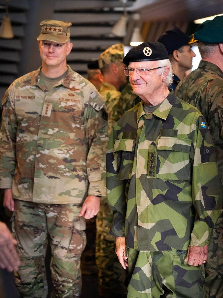 Na Suécia, a princesa herdeira, Victoria, tem participado ativamente em programas de formação militar, com destaque para a sua passagem pela Força Aérea Sueca. Em dezembro de 2025, concluiu a formação, tendo pilotado sozinha um caça JAS 39 Gripen. O seu pai, o rei Carlos XVI Gustavo, para além das funções reais, é Comandante Supremo das Forças Armadas suecas, o que justifica a presença frequente em cerimónias e encontros internacionais em uniforme militar. A imagem em destaque remete para uma visita do monarca à sede da NATO, em Bruxelas.
