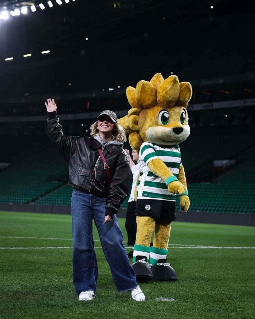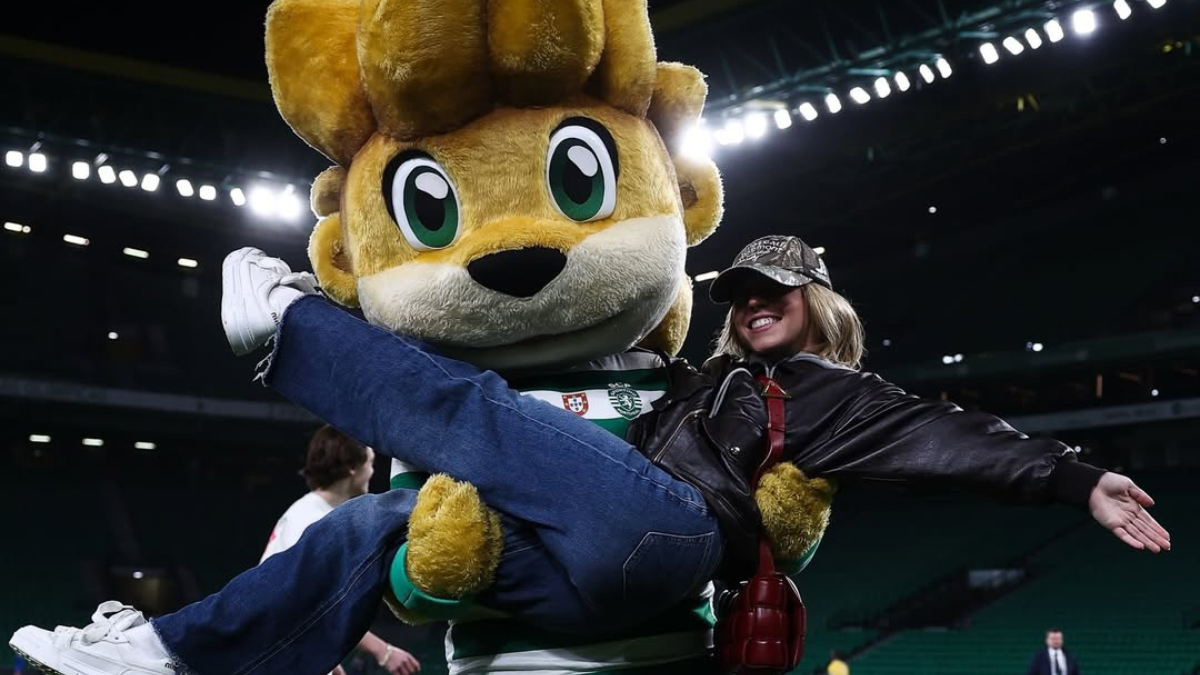 A presença do trio não se limitou às bancadas. Após o apito final, os atores desceram ao relvado, onde trocaram alguns toques na bola e posaram para fotografias ao lado de ‘Jubas’, a mascote do clube leonino.
