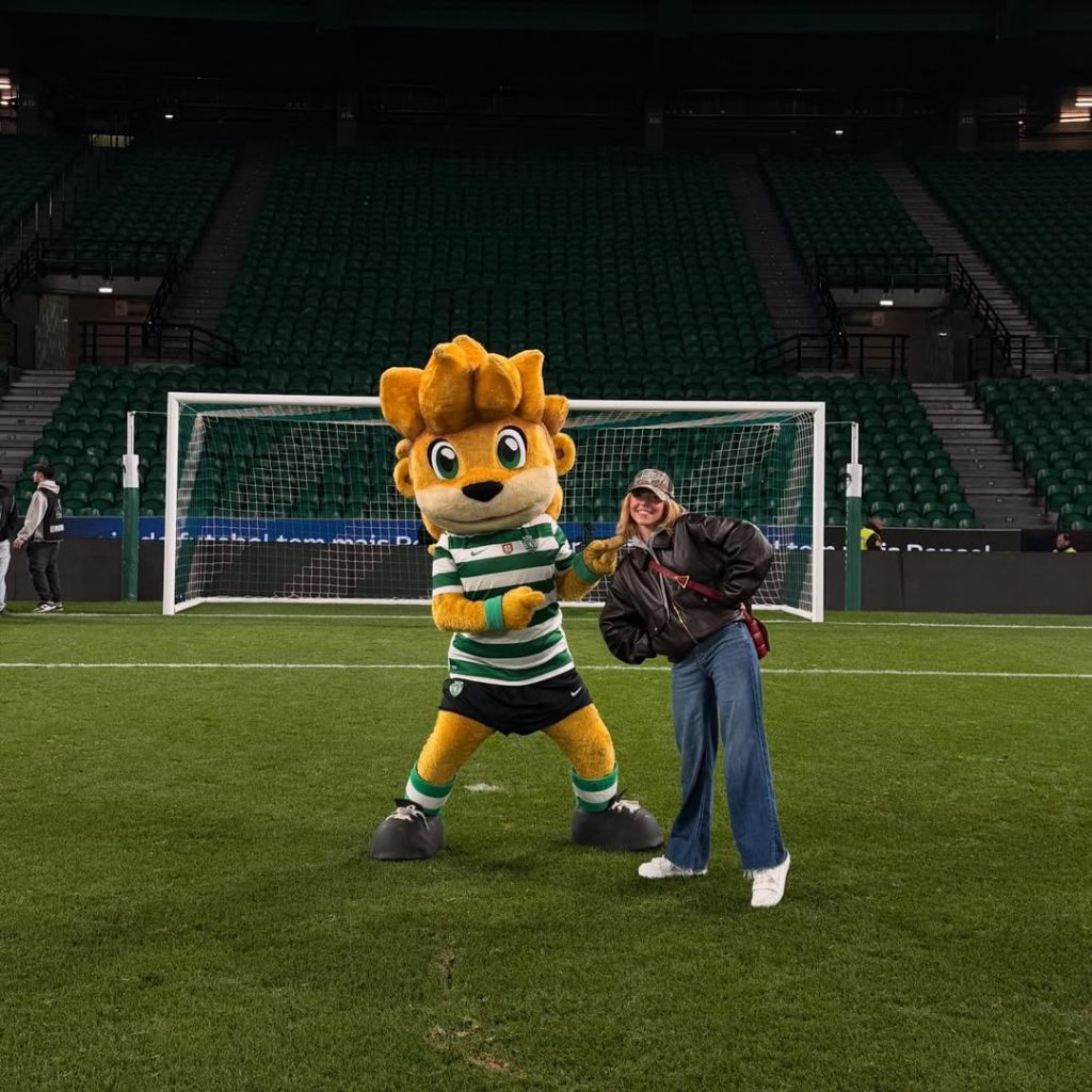 De recordar que a atriz norte-americana tinha sido vista anteriormente no Palácio da Pena, em Sintra, e no Estádio José Alvalade, a 27 de fevereiro, para assistir ao Sporting-Estoril Praia, acompanhada por Leo Woodall e Matthew Goode. No final do jogo, desceu ao relvado e encontrou a mascote Jubas, momento que corresponde à quinta foto da sua galeria. O próprio bicampeão nacional comentou a publicação no Instagram: “Essa quinta foto… Incrível ter-te aqui.”