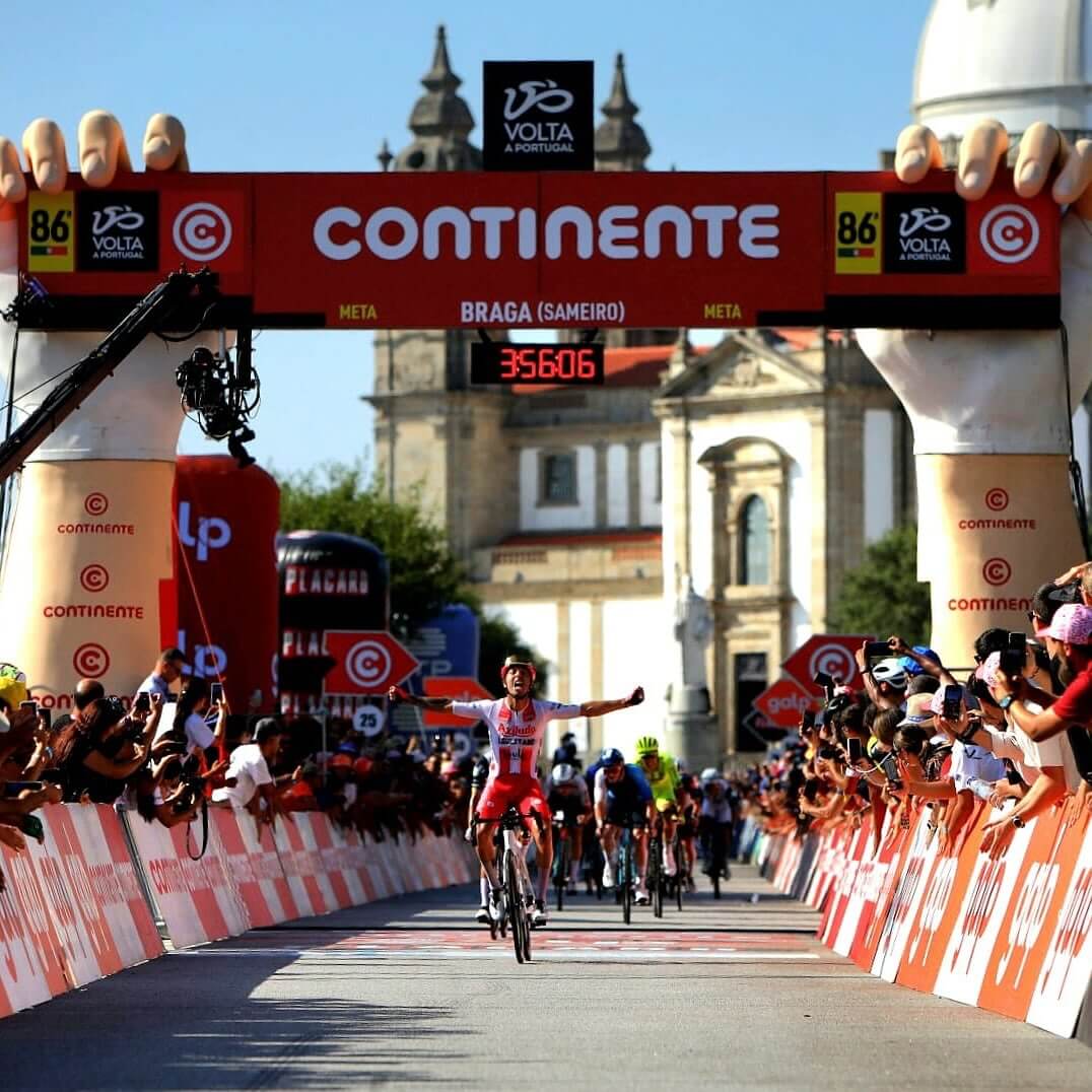 Nicolás Taveni, de 29 anos, da Aviludo/Louletano/Loulé, venceu, ao sprint, a 1.ª etapa da Volta a Portugal, na chegada de 2.ª categoria, no Sameiro, em Braga.