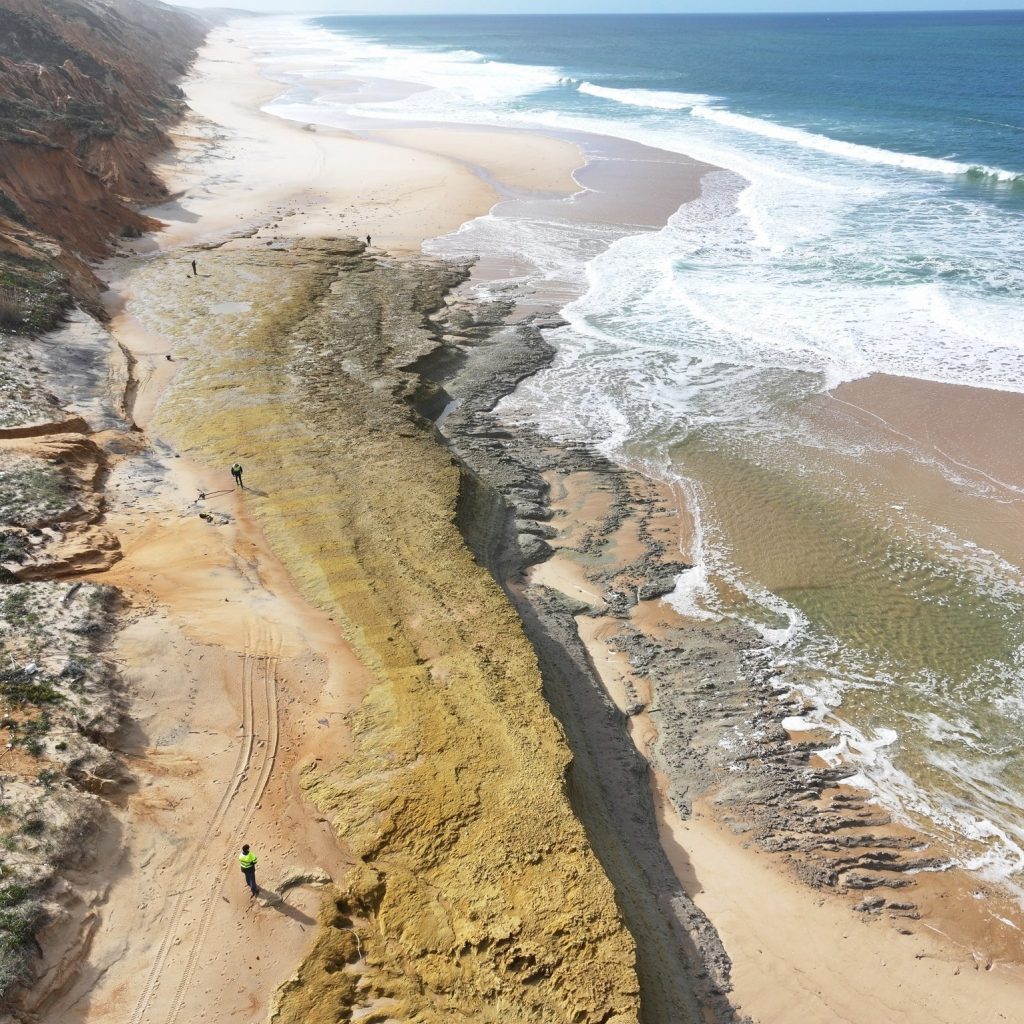 As recentes tempestades que assolaram a costa portuguesa provocaram uma remobilização significativa de areias na Praia da Galé (Fontainhas), no concelho de Grândola, revelando achados paleontológicos de elevada relevância científica. O município confirmou, esta semana, a descoberta de fósseis que pertencerão, pelo menos, a duas baleias.