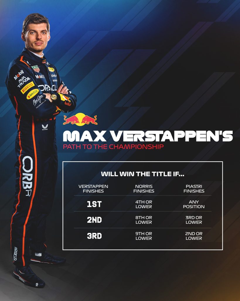 Já o piloto da Red Bull chega com a motivação de poder igualar Michael Schumacher como os únicos a conseguir ganhar cinco títulos de pilotos consecutivos na F1. No entanto, está sempre dependente do desempenho de Lando Norris.