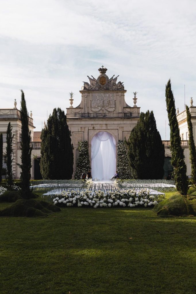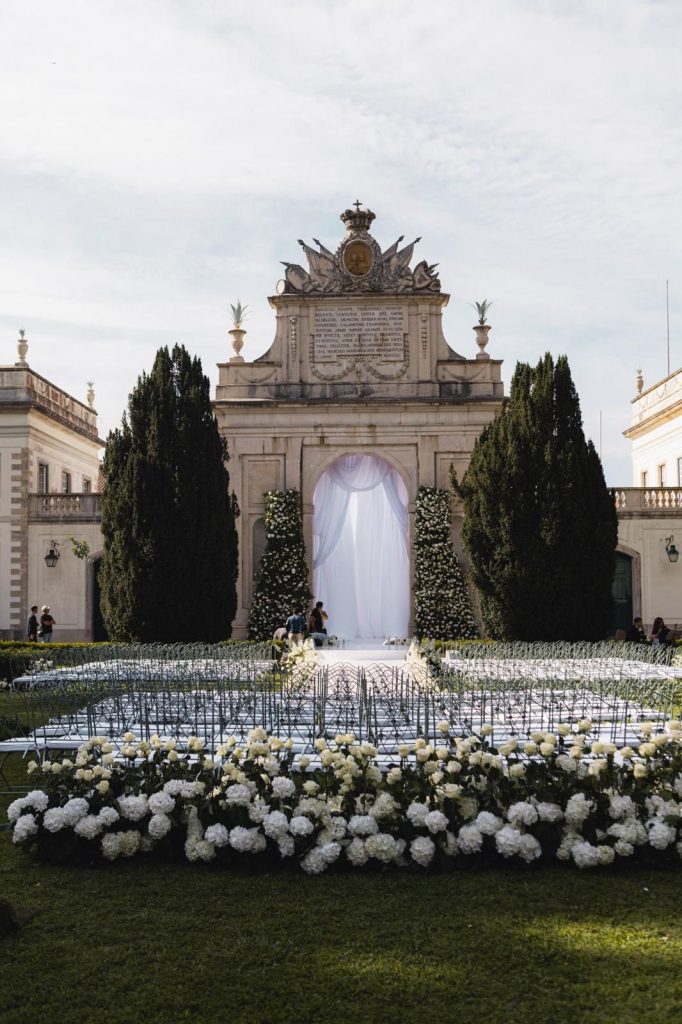 O local da boda foi o Palácio de Seteais, em Sintra, um dos mais românticos locais para um casamento, reconhecido pela sua arquitetura neoclássica, pelas suas famosas pinturas a fresco, interiores luxuosos e jardins de contos de fadas.